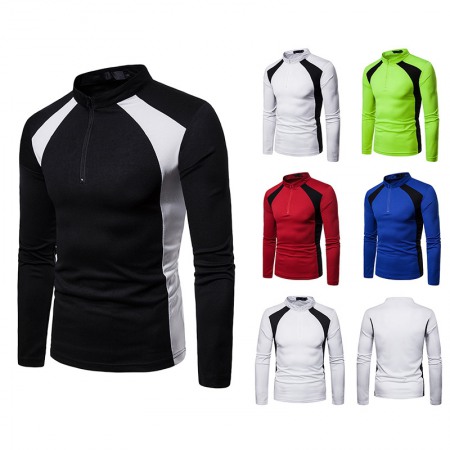 Men's Irregular Stitching Long-Sleeved Plus Size Henry Collar T-Shirt